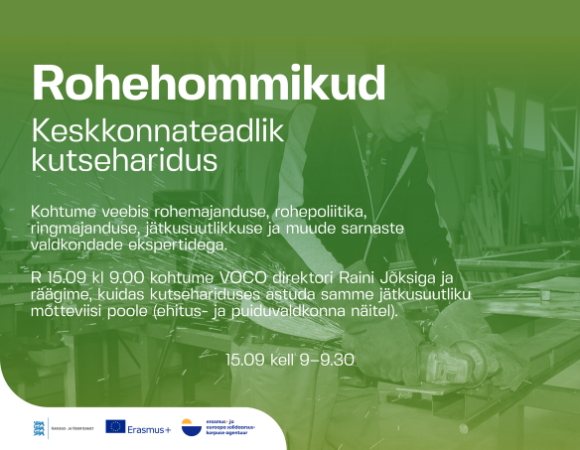 Rohehommikute eestvedajaks on Erasmus+ programmi kutsehariduse ekspertide (VET Teams) kogu.